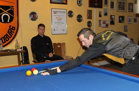 Nun mussten die Spieler Christian Dressel und Manuel Orttmann in den Cadré- Disziplinen Ihre Partien gewinnen um Punkte für Coburg zu sichern.
