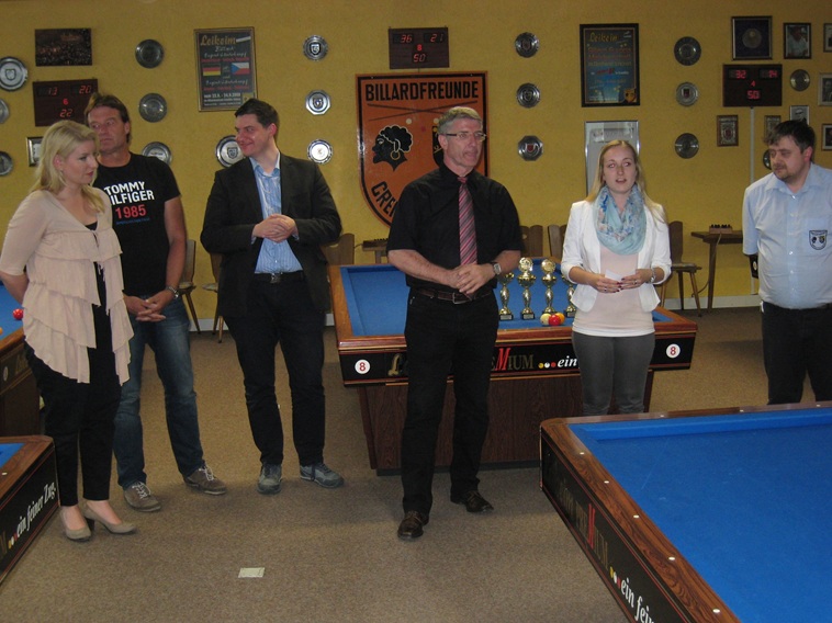 Siegerehrung durch die Pokalspenderv.l.: Stadträtin Bartl, Stadtrat Ruggaber, Stadtrat Sauerteig, Landrat Busch, Luisa Koch (1. Vors.), Sascha Gabert (2. Sportwart)
