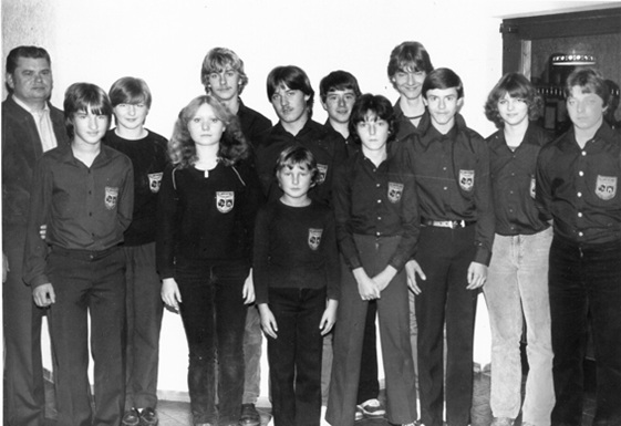 Ein Teil der Jugendlichen im Jahr 1982 mit Jugendleiter Fritz Koch